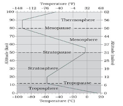 खंभे से अधिक 45oC. यहाँ तापमान लगभग स्थिर है, और इसलिए, यह tropopause कहा जाता है. यह स्ट्रैटोस्फियर tropopause ऊपर पाया जाता है और 50 किमी की ऊंचाई तक फैली है. समताप मंडल की एक महत्वपूर्ण विशेषता है कि यह ओजोन परत शामिल है. इस परत अल्ट्रा वायलेट विकिरण और ढाल तीव्र, ऊर्जा के हानिकारक रूप से पृथ्वी पर जीवन को अवशोषित. मीसोस्फीयर समताप मंडल है, जो 80 किमी की ऊंचाई तक फैली ऊपर है. इस परत में, एक बार फिर तापमान ऊंचाई में वृद्धि के साथ कम शुरू होता है और 100 शून्य डिग्री से 80 किमी की ऊंचाई पर सी तक पहुँचता है. मीसोस्फीयर की ऊपरी सीमा mesopause के रूप में जाना जाता है. योण क्षेत्र mesopause ऊपर 80 और 400 किमी के बीच स्थित है. यह विद्युत चार्ज आयनों के रूप में जाना जाता कणों शामिल है, और इसलिए, यह योण क्षेत्र के रूप में जाना जाता है. पृथ्वी से प्रेषित रेडियो तरंगों इस परत से वापस पृथ्वी पर परिलक्षित होते हैं. तापमान यहाँ ऊंचाई के साथ बढ़ रही शुरू होता है. योण क्षेत्र के ऊपर वातावरण के ऊपरवाला परत के बहिर्मंडल के रूप में जाना जाता है. यह सर्वोच्च परत है, लेकिन बहुत कम इसके बारे में जाना जाता है. जो भी सामग्री वहाँ रहे हैं, इन अत्यंत इस परत में क्रमशः रहे हैं, और यह बाह्य अंतरिक्ष के साथ धीरे - धीरे विलीन हो जाती है. हालांकि माहौल के सभी परतों हम पर प्रभाव व्यायाम करना चाहिए, भूगोल वातावरण के पहले दो परतों के साथ संबंध हैं